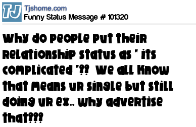 X is Why do people put their relationship status as " its complicated "?? We all know that means ur single but still doing ur ex.. why advertise that???