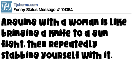 X says Arguing with a woman is like bringing a knife to a gun fight, then repeatedly stabbing yourself with it.