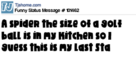 X A spider the size of a golf ball is in my kitchen so I guess this is my last Sta