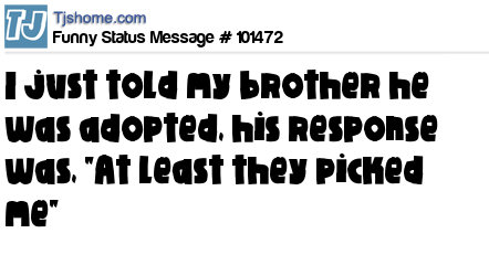 - # 151518 I just told my brother he was adopted, his response was, “At least they picked me”