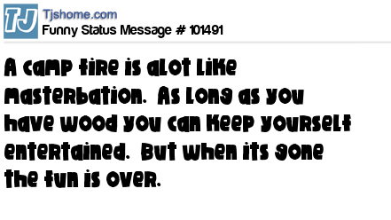 X A camp fire is alot like masterbation. As long as you have wood you can keep yourself entertained. But when its gone the fun is over.