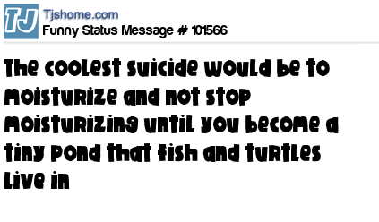 X The coolest suicide would be to moisturize and not stop moisturizing until you become a tiny pond that fish and turtles live in