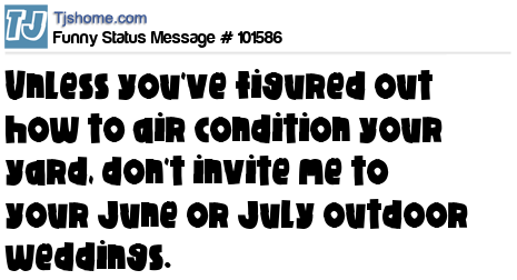 X is Unless you've figured out how to air condition your yard, don't invite me to your June or July outdoor weddings.