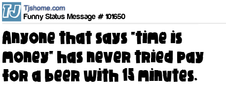 X is Anyone that says "time is money" has never tried pay for a beer with 15 minutes.