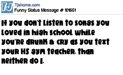 X is If you don't listen to songs you loved in high school while you're drunk & cry as you text your HS gym teacher, than neither do I.