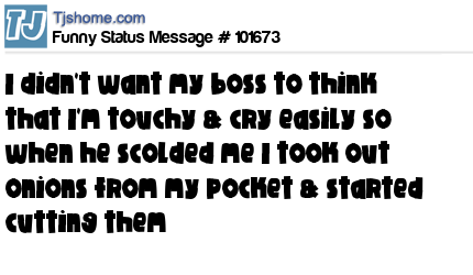 X I didn't want my boss to think that I'm touchy & cry easily so when he scolded me I took out onions from my pocket & started cutting them