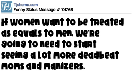 X is If women want to be treated as equals to men, we're going to need to start seeing a lot more deadbeat moms and manizers.