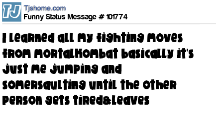 X is I learned all my fighting moves from mortalkombat basically it's just me jumping and somersaulting until the other person gets tired&leaves