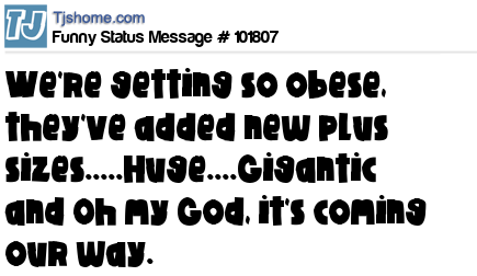 X We're getting so obese, they've added new plus sizes.....Huge....Gigantic and Oh my God, it's coming our way.