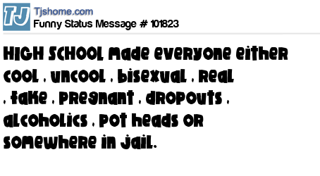 X is HIGH SCHOOL made everyone either cool , uncool , bisexual , real , fake , pregnant , dropouts , alcoholics , pot heads or somewhere in jail.