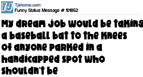 X My dream job would be taking a baseball bat to the knees of anyone parked in a handicapped spot who shouldn't be