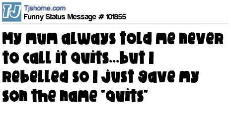 X says my mum always told me never to call it quits...but I rebelled so I just gave my son the name "quits"