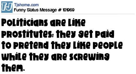 X says Politicians are like prostitutes; they get paid to pretend they like people while they are screwing them.