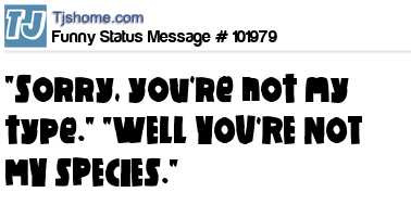 X says "Sorry, you're not my type." "WELL YOU'RE NOT MY SPECIES."
