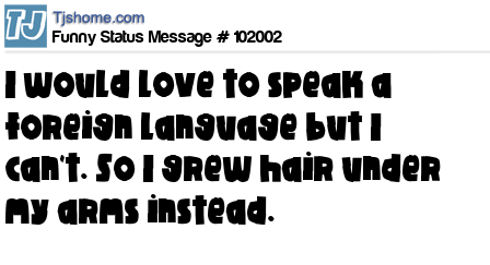 X says I would love to speak a foreign language but I can't. So I grew hair under my arms instead.