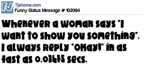 X Whenever a woman says "I want to show you something", I always reply "Okay!" in as fast as 0.03475 secs.