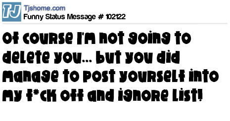 X Of course I'm not going to delete you... but you did manage to post yourself into my f*ck off and ignore list!