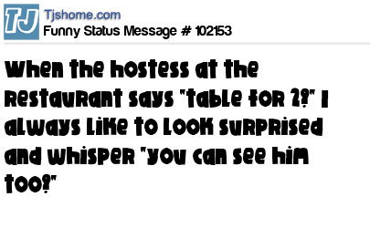 X is When the hostess at the restaurant says "table for 2?" I always like to look surprised and whisper "you can see him too?"
