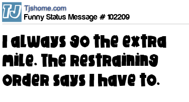 - # 106657 What the hell is this REstraining Order?!? I never even got a Straining Order? I'm gonna go over to her house and sort this out.