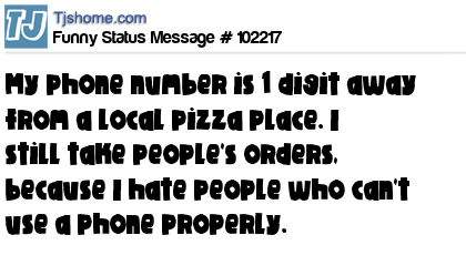 X says My phone number is 1 digit away from a local pizza place. I still take people's orders, because I hate people who can't use a phone properly.