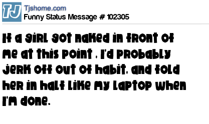 X is If a girl got naked in front of me at this point , I'd probably jerk off out of habit, and fold her in half like my laptop when I'm done.