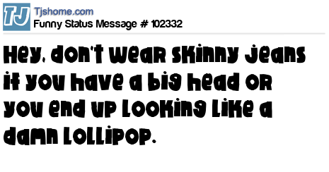 X is Hey, don't wear skinny jeans if you have a big head or you end up looking like a damn lollipop.