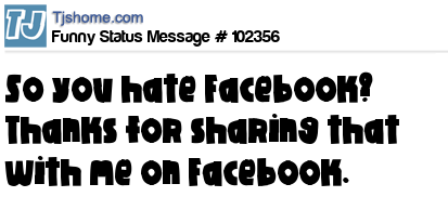 X So you hate Facebook? Thanks for sharing that with me on Facebook.