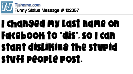 X says I changed my last name on Facebook to "dis", so I can start disliking the stupid stuff people post.