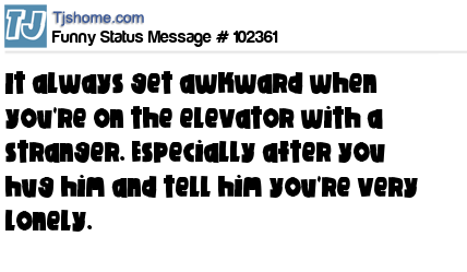 X says It always get awkward when you're on the elevator with a stranger. Especially after you hug him and tell him you're very lonely.