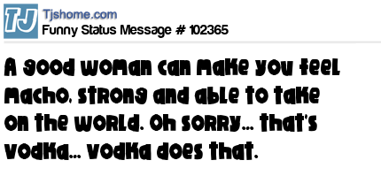 X says A good woman can make you feel macho, strong and able to take on the world. Oh sorry… that's vodka… vodka does that.