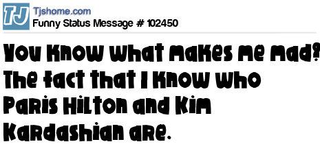 X says You know what makes me mad? The fact that I know who Paris Hilton and Kim Kardashian are.