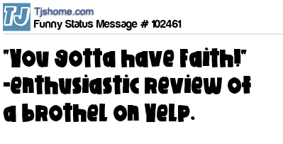 X is "You gotta have Faith!" -enthusiastic review of a brothel on Yelp.