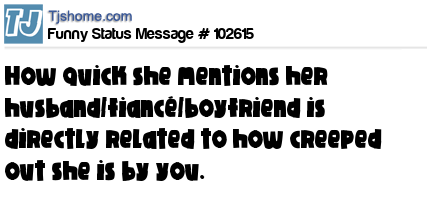 X says How quick she mentions her husband/fiancé/boyfriend is directly related to how creeped out she is by you.