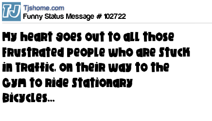 X My heart goes out to all those Frustrated people who are Stuck in Traffic, on their way to the Gym to ride Stationary Bicycles...
