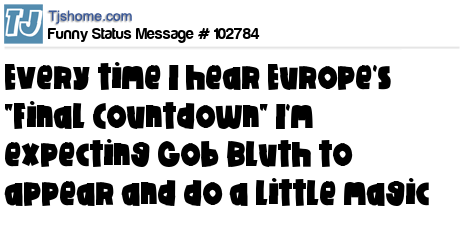 X says Every time I hear Europe's "Final Countdown" I'm expecting Gob Bluth to appear and do a little magic