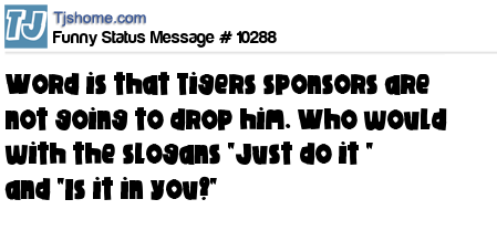 X is word is that Tigers sponsors are not going to drop him. Who would with the slogans "Just do it " and "Is it in you?"