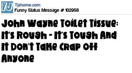 - # 185323 I lost money in the John Wayne toilet paper co. The T.P. was so ruff it wouldn't take sh*t off of anybody.