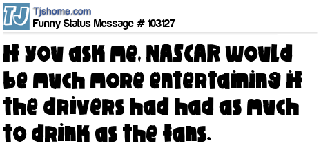 - # 196680 If you ask me, NASCAR would be much more entertaining if the drivers had as much to drink as the fans.