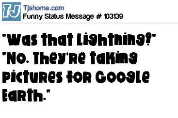 X says "Was that lightning?" "No. They're taking pictures for Google Earth."