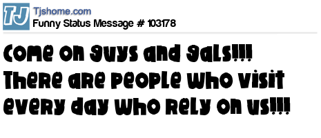 X says Come on guys and gals!!! There are people who visit every day who rely on us!!!