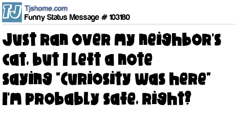 X is Just ran over my neighbor's cat, but I left a note saying "Curiosity was here" I'm probably safe, right?