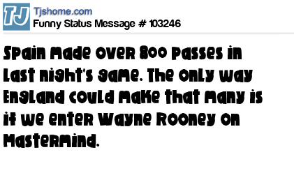 X Spain made over 800 passes in last night's game. The only way England could make that many is if we enter Wayne Rooney on Mastermind.