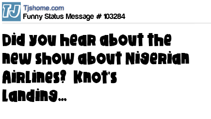 X says Did you hear about the new show about Nigerian Airlines? Knot's Landing…