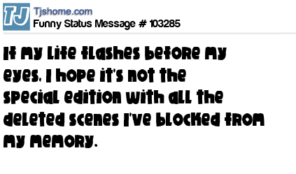 - # 80851 When my life flashes before my eyes, I hope it's not the special extended edition with all the deleted scenes I've blocked from my memory.