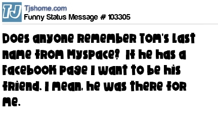 X says Does anyone remember Tom's last name from Myspace?  If he has a Facebook page I want to be his friend. I mean, he was there for me.