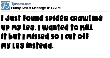 X says I just found spider crawling up my leg. I wanted to kill it but I missed so I cut off my leg instead.