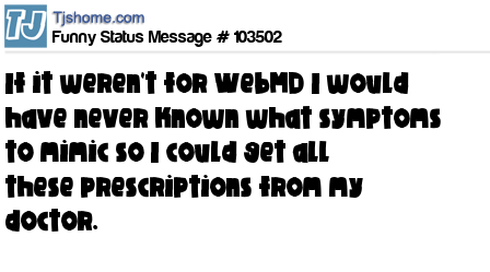 X If it weren't for WebMD I would have never known what symptoms to mimic so I could get all these prescriptions from my doctor.