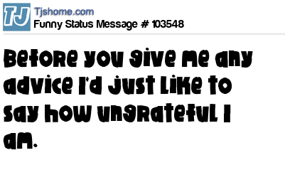 X says Before you give me any advice I'd just like to say how ungrateful I am.