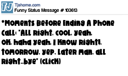 X *Moments Before Ending A Phone Call: "All right, cool, yeah, ok, haha yeah, I know right!, tomorrow, yep. later man. all right..bye" (click)