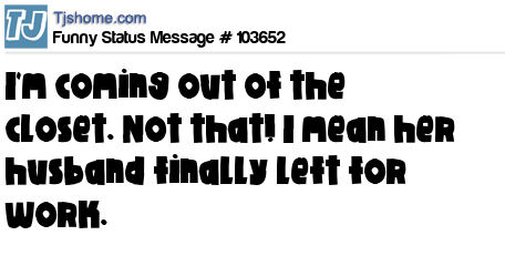 X I'm coming out of the closet. Not that! I mean her husband finally left for work.